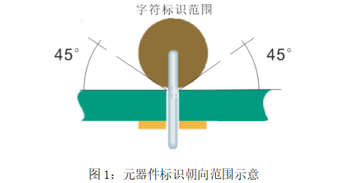 Ø 元器件必须按照焊盘间距进行弯曲成形,弯曲基本对称,保证元器件安装后标识明显可见,如下图所示;