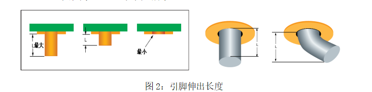 Ø 元器件引脚,其伸出部分L最小值要能使焊料中的引脚末端可辨识,L最大值为2.0mm,如下图所示。