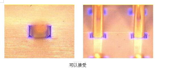 由于漆本身的特性,在喷到印制电路板上,有可能留渗透到元件下面,造成不良,下面就分贝说明在这种条件下的可接受和不合格的情况: