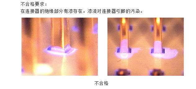 喷漆不能沿着连接器引脚上行,连接器的引脚不能被向上流动的漆污染。
