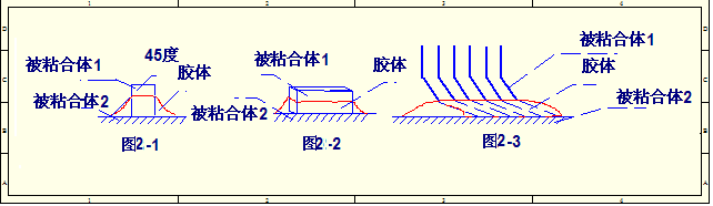 (5)、打胶时注意打胶方法,水平方向旋转打胶,适应圆柱体、长方体,要求强度高的场合;水平方向由左至右打胶,适应于排线,强度要求适中的场合;垂直方向定胶,适应于固定,强度要求不高的场合(见图2-1,图2-2,图2-3)。