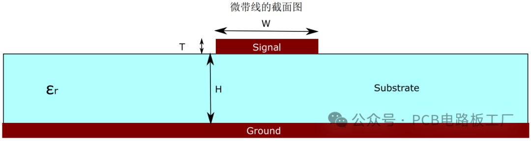 微带线:微带线结构简单,易于加工,它通常位于PCB的顶层,射频信号线与地平面相邻。微带线的特性阻抗受基板高度、介电常数、走线宽度以及铜厚等因素的影响。