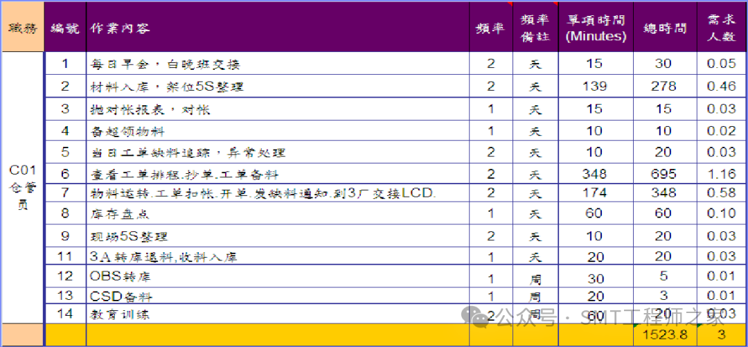 -工作量分析制定Off line人力实例-仓管员评估
