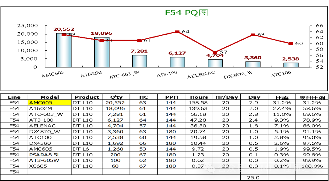 3. 根据PQ Chart 评估结果,得出当线标准人力