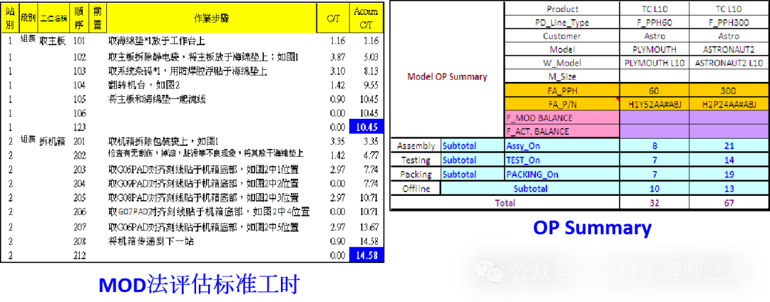 (1).使用MOD法预估单元工时,计算各站总工时(除测试之外)
