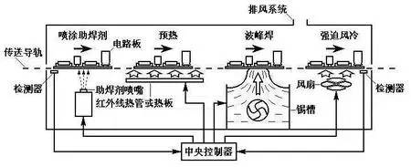 DIP插件波峰焊锡机整机工作原理流程图