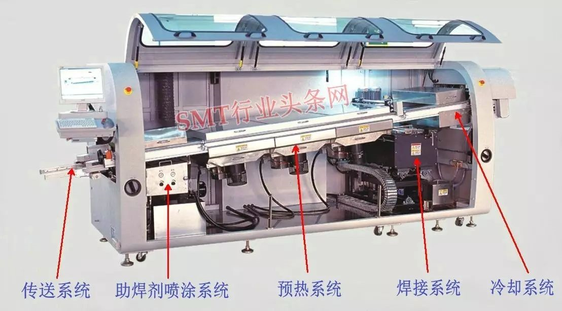 波峰焊是指将熔化的软钎焊料(铅锡合金),经电动泵或电磁泵喷流成设计要求的焊料波峰,亦可通过向焊料池注入氮气来形成,使预先装有元器件的印制板通过焊料波峰,实现元器件焊端或引脚与印制板焊盘之间机械与电气连接的软钎焊。根据机器所使用不同几何形状的波峰,波峰焊系统可分许多种。