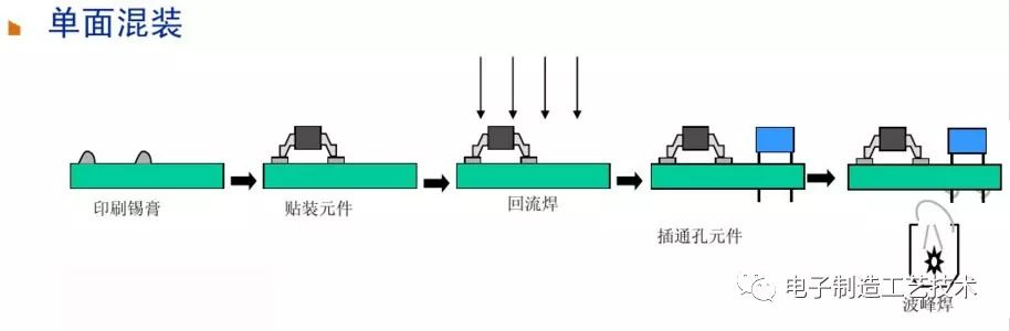 制程就是SMT加工制程与DIP加工制程的结合,根据不同生产技术的要求,可以分为单面SMT贴装制程,单面DIP插装制程,单面混装制程,单面贴装和插装混合制程,双面SMT贴装制程和双面混装制程等等。