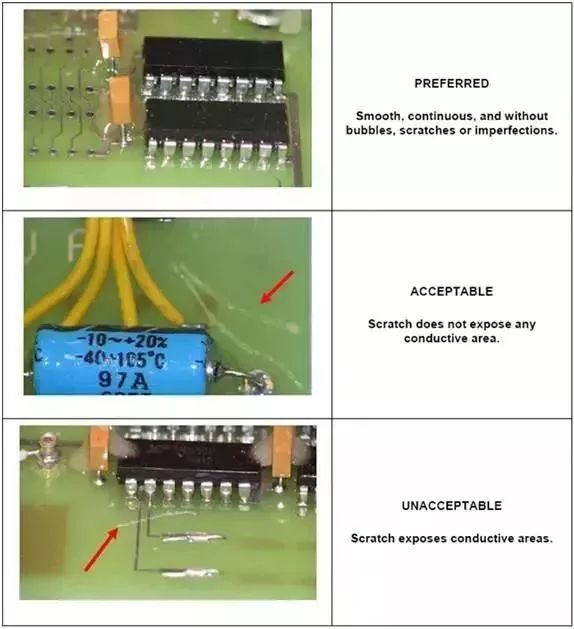 由于多方面的原因导致电路板在涂覆时出现一种或者多种覆盖缺陷,要具体问题具体分析,逐一解决。