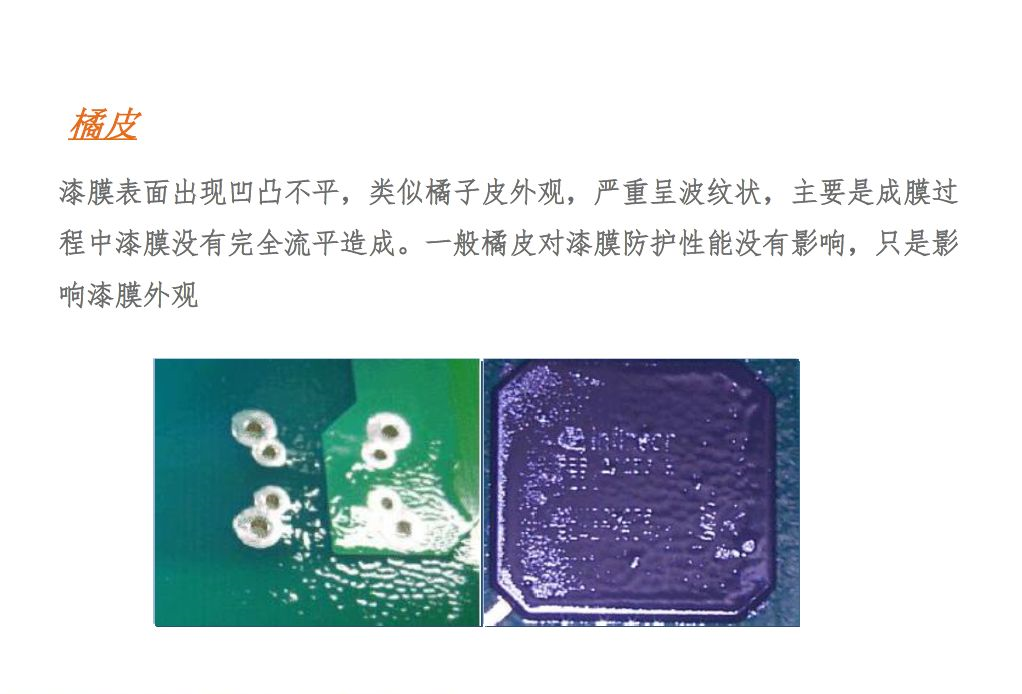 三防漆出现桔纹的现象,是因为强迫干燥而产生的。