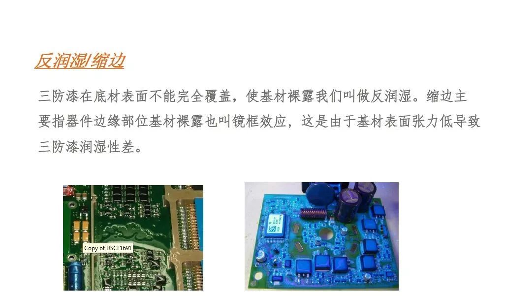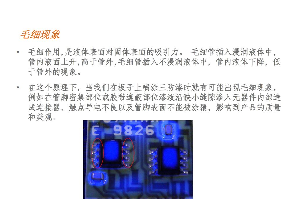 三防漆出现分层的现象,主要出现在元器件和阻焊层上。
