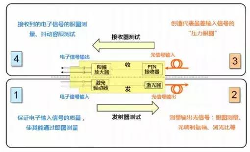 2、发射器的输出光信号必须用眼图测试、光调制振幅和消光比等光学质量指标来测量。