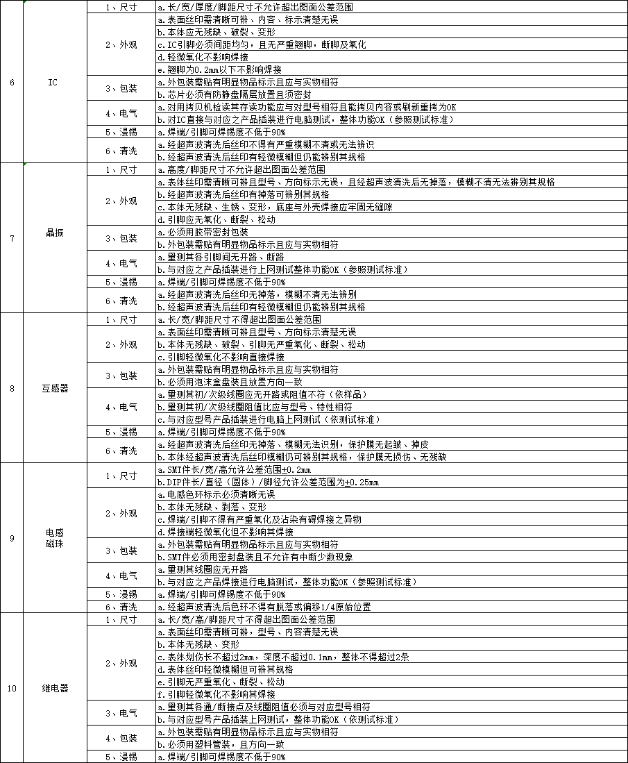 IQC來料檢驗標準