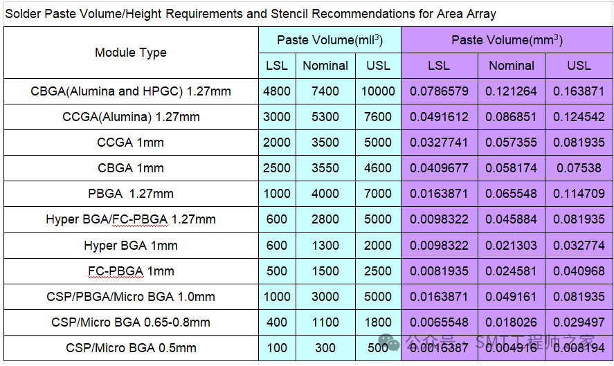 1)錫膏厚度管製之蔘考範圍:(SPI機器測量以體積爲主要管製,厚度爲輔助蔘考)