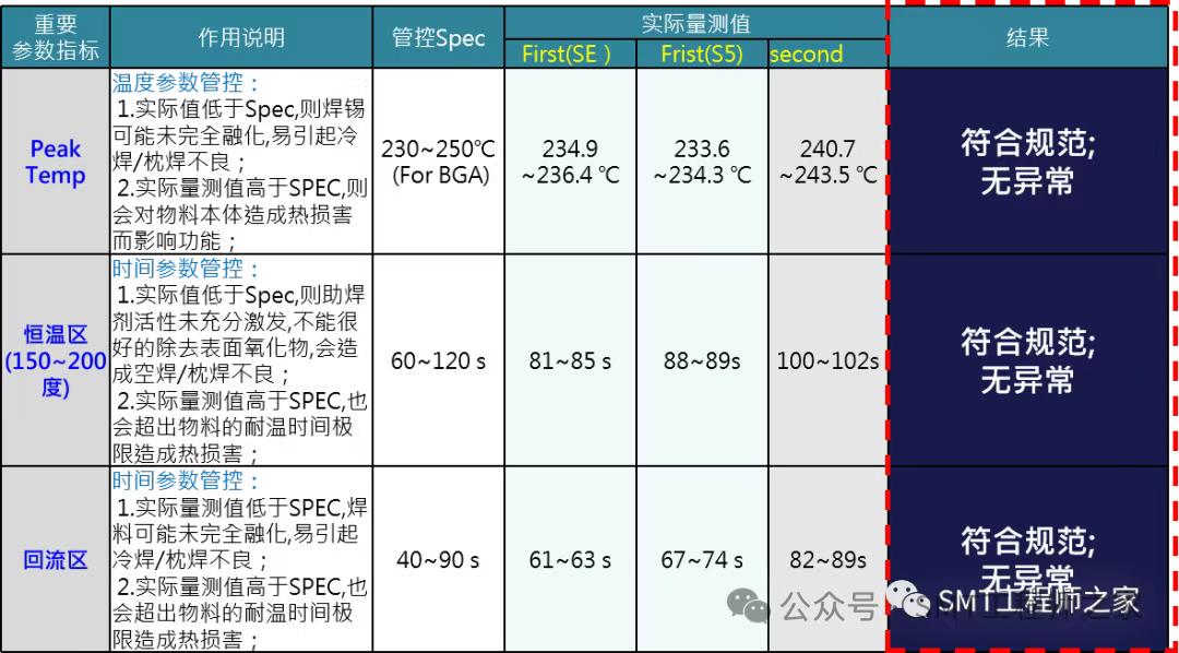5、Reflow的各箇蔘數也密切影響著焊接狀況,如蔘數異常也會造成枕焊異常,故確認當日生産Profile(圖可放大)如下;