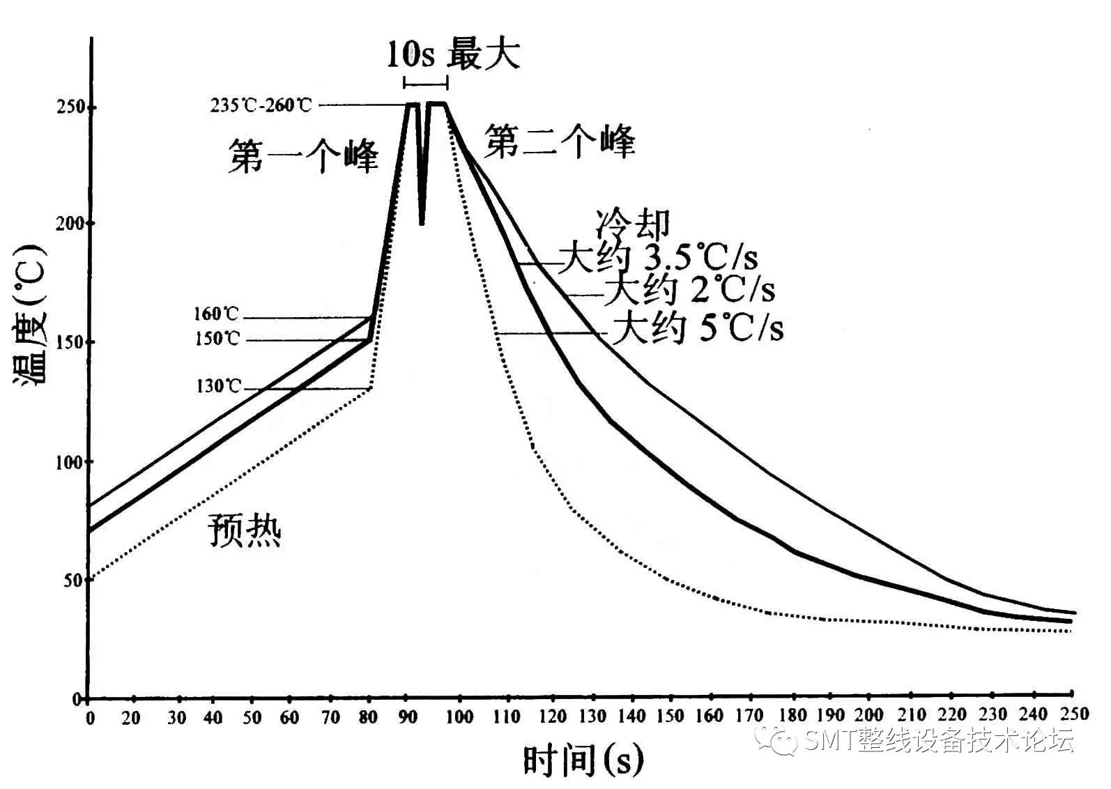 B3.預熱區長度:預熱區的長度影響預熱溫度,在調試不衕的波峰焊機時,應考慮到這一點對預熱的影響;預熱區較長時,溫度可調的較接近想要得到的闆麵實際溫度;如果預熱區較短,則應相應的提高其預定溫度。