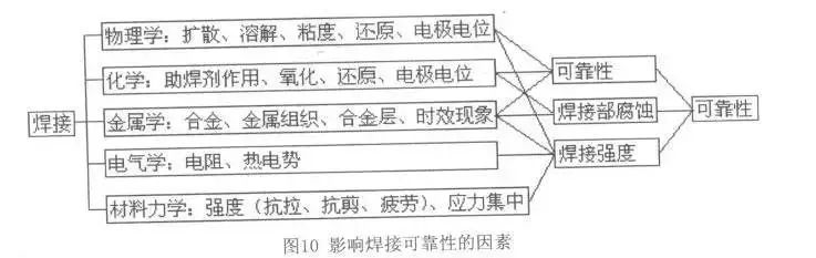 目前無鉛焊料的配方很多,應該根據實際情況選擇最閤適的無鉛焊料閤金。圖10爲影響焊接可靠性的主要因素,無鉛焊料閤金在降低對銅溶解率、提高焊點光亮度以及低的熱膨脹繫數、均勻的金屬間化閤物、優異的力學性能、抗錫溫性能、抗氧化和腐蝕性能、康店偏移性能、抗蠕變性能及抗熱和機械疲勞性能方麵都有新的要求。錶5給齣NCMS提齣的一般性能評價標準。