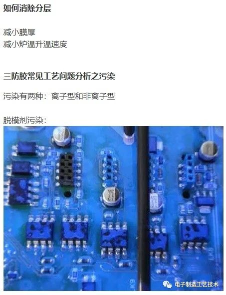 對於被汙染的闆子,水性漆和100%固含量的三防膠會比溶劑型更容易産生缺陷,因爲水性漆的錶麵張力>溶劑型錶麵張力。